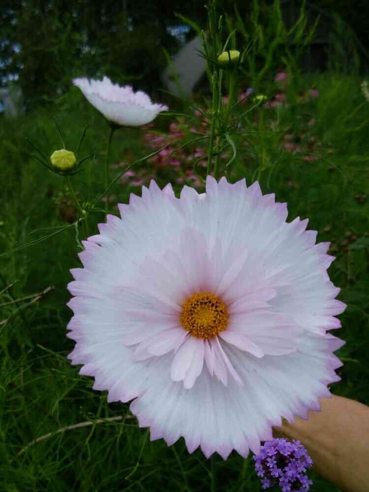 昨年の夏、北海道のガーデン街道巡りで出会ったコスモスです。こんな咲き方をするコスモスがあるんですね。名前は何コスモスと言うのでしょうか。とても可愛らしかったです。