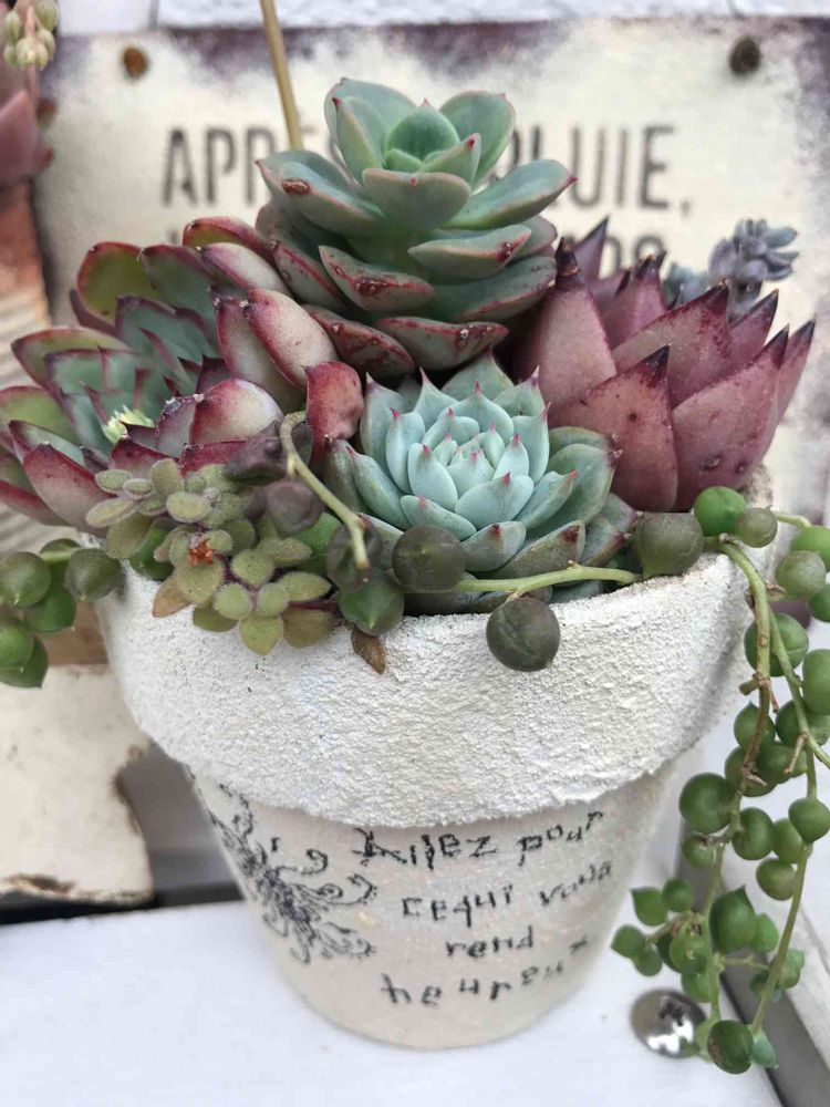 先々週のシマムラ園芸さんイベントでお持ち帰りしたozcoさんのリメ鉢に寄せ植え🤗