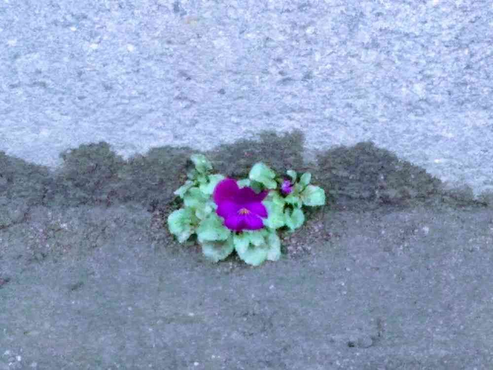 散策の通り道の、アスファルトの隙間から、菫の花が咲いていました。