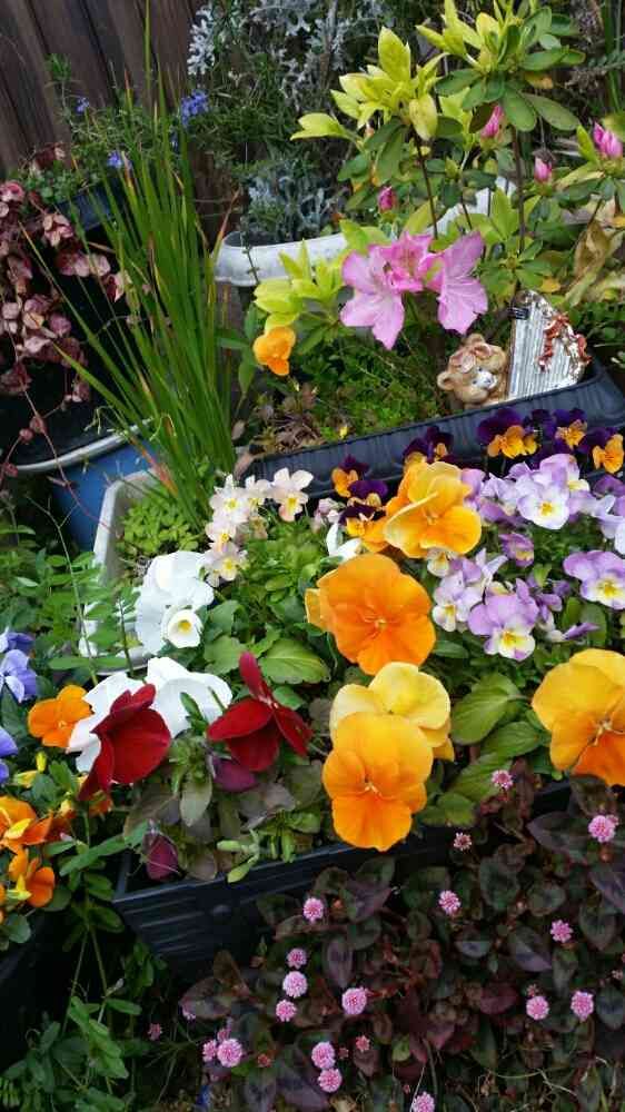 さん ありがとうございます! ビオラ…パンジー 毎年何色がいいかなぁ??結局えらびきれずにいろんな子を ポリゴナム いつの間にかあっちこっちに