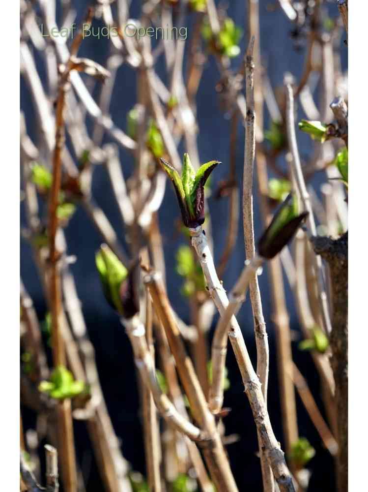 春の日差しを浴びて、ちんちん電車遊歩道の紫陽花の葉芽が開き始めた。🌱🌱🌱