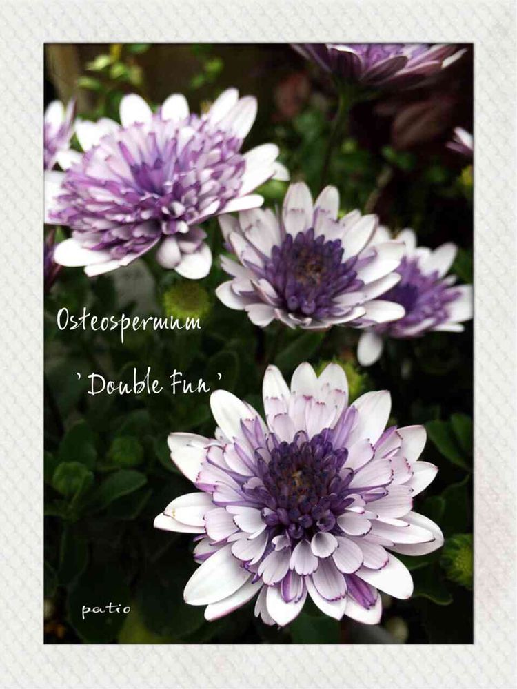 こんにちは〜〜(๑>◡<๑)いつもステキ💕こちらのお名前難しいですね(๑>◡<๑)オステオスペルマム'ダブルファン'とっても素敵🎶💕