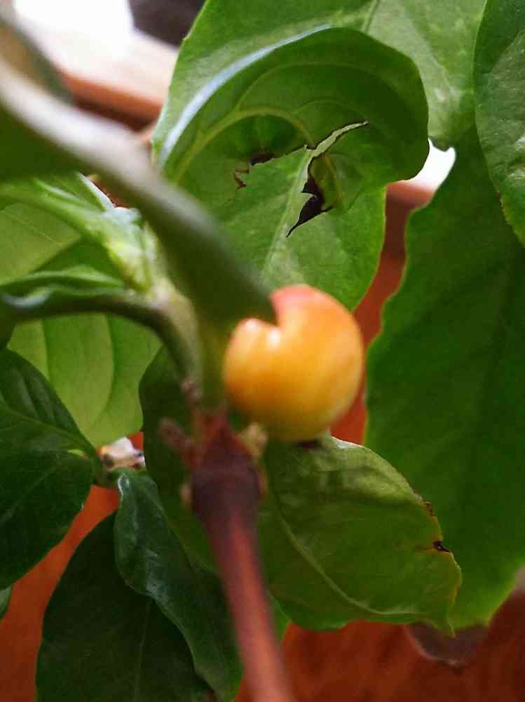 何年ぶりかな…。コーヒーの木が実を付けました。