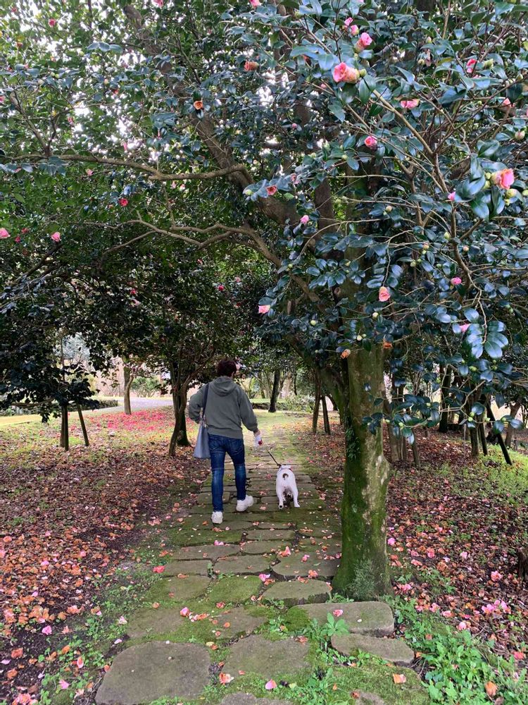 昨日、わんこの散歩がてら、「久留米つばき園」へ。