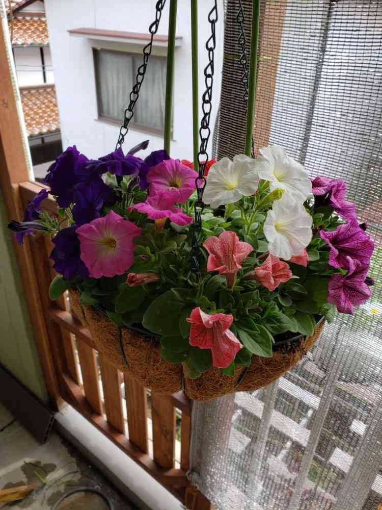 投稿写真は、南側のベランダにハンギングしているペチュニアです。これは妻が希望したので仕立てました。