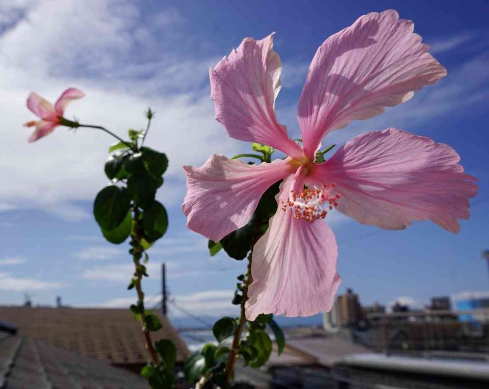 もう、かわいいピンクのハイビスカスが咲いているんですね?