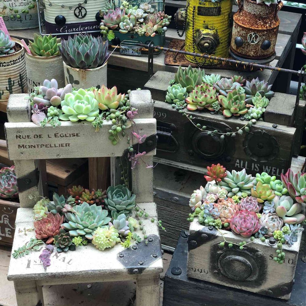 水崎園芸さんの多肉イスとカメラ鉢とラジオ鉢😍
