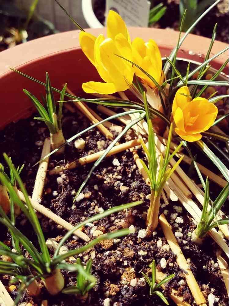 クロッカスが芽をふきだしました。
