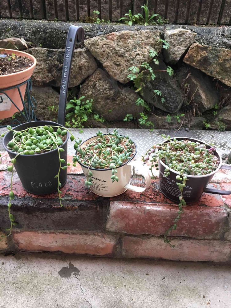右2つは、今日植え替えた斑入りグリネとピーチ💕