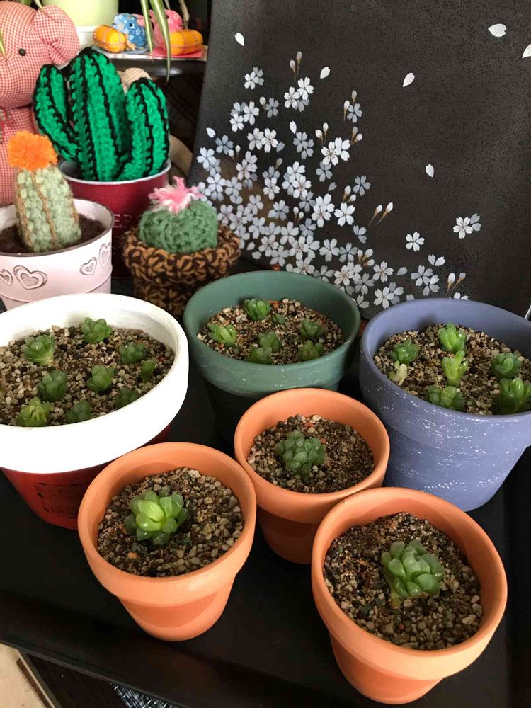 一番左上のピンクの鉢!くみちゃん手作りサボだよね♪