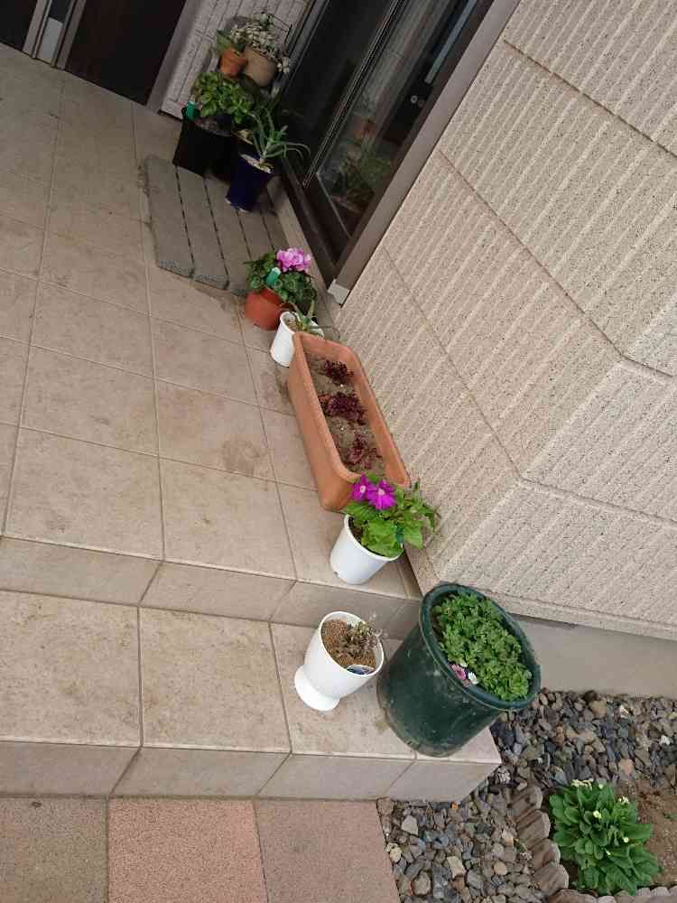 植え替え等の作業をシートをせずしたので、タイルが少々汚れてます💦が、心は満足(*´ー`*)