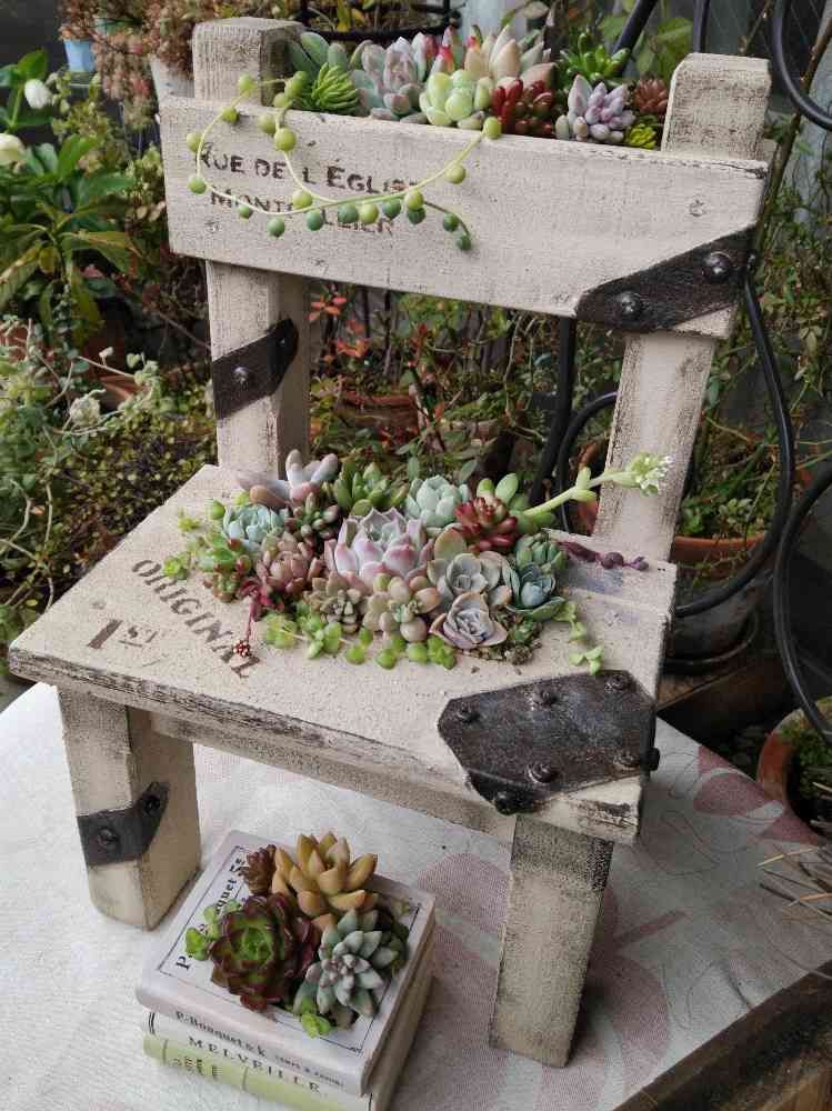 凄いおりやれな椅子に 可愛く寄せ植え〜〜たまんないね〜これは💗💗💗 素敵すぎる✨