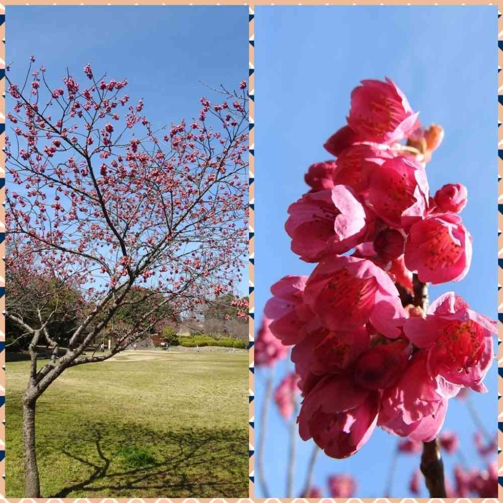 公園⛲の広場で🌸咲くカンヒザクラの花🌺