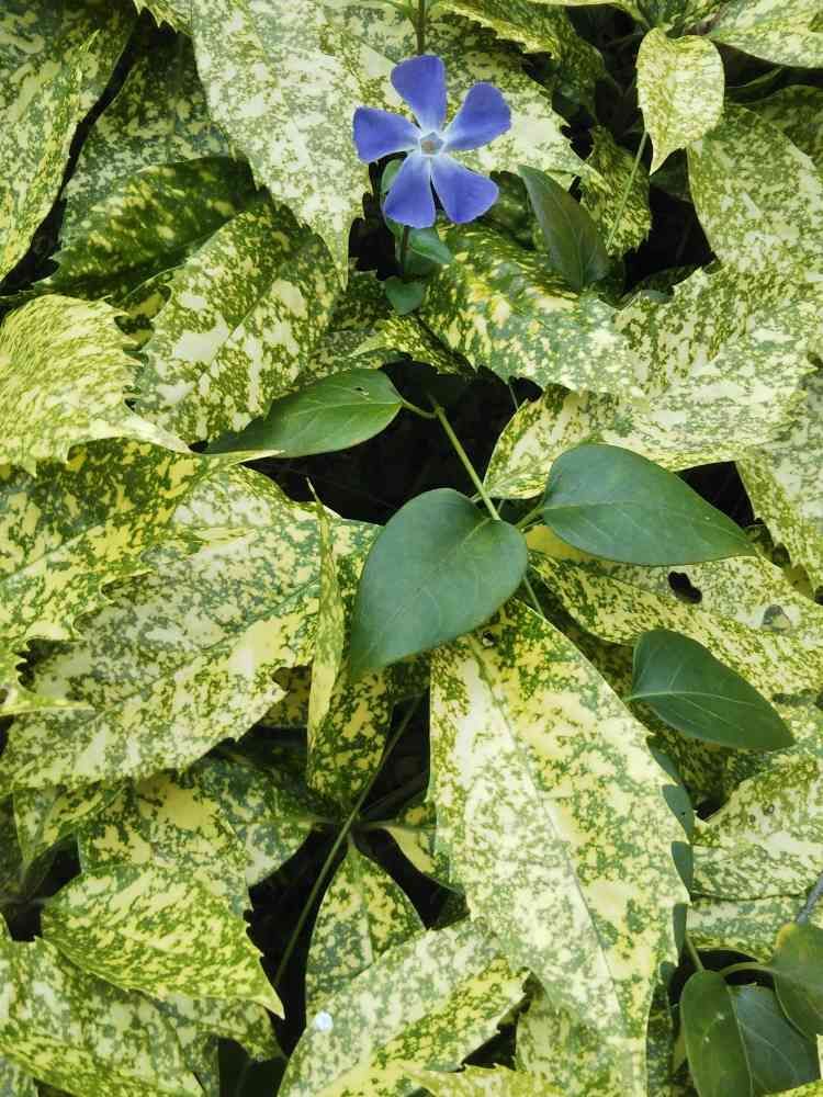 ツルニチニチソウが綺麗な葉っぱの間から負けじと顔だして可愛いですね❤️
