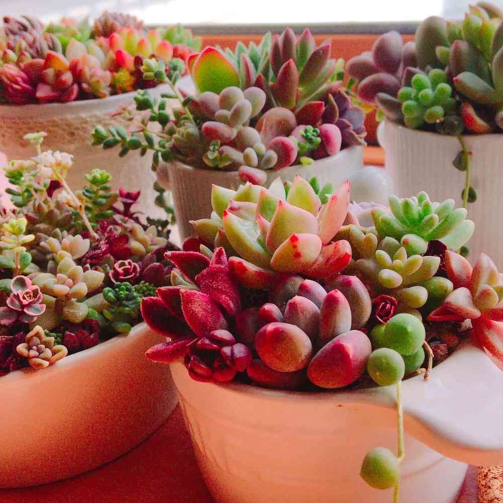 窓辺,紅葉する多肉,多肉寄せ植えの投稿画像