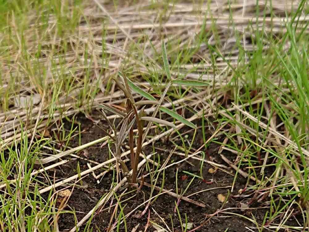柑橘の下草として、2月末に種を蒔いたへアリーベッチ(ナヨクサフジ:弱草藤)の芽が出ていました。