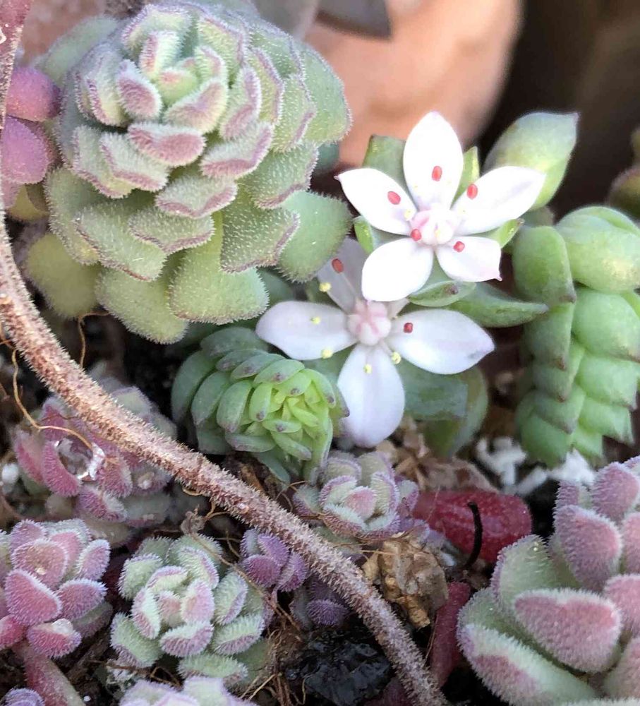 小さいお花ですが、写真で見るとすごくかわいいですよね❣️夏はびよーんと伸びて、全く別の姿に変わる子ですが、よく増えて秋から春はすごくかわいいです。