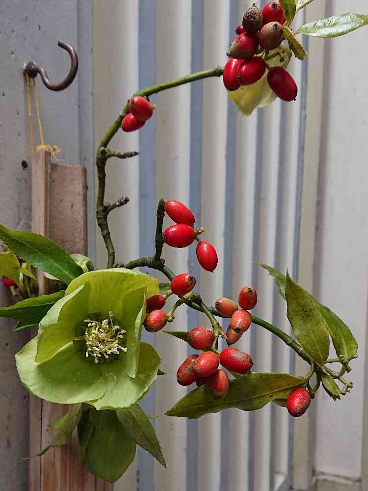赤い実の枝に引っかけて立たせて来たのだけど、できれば月曜日に生け替えてほしいと思う今日この頃……😆💦