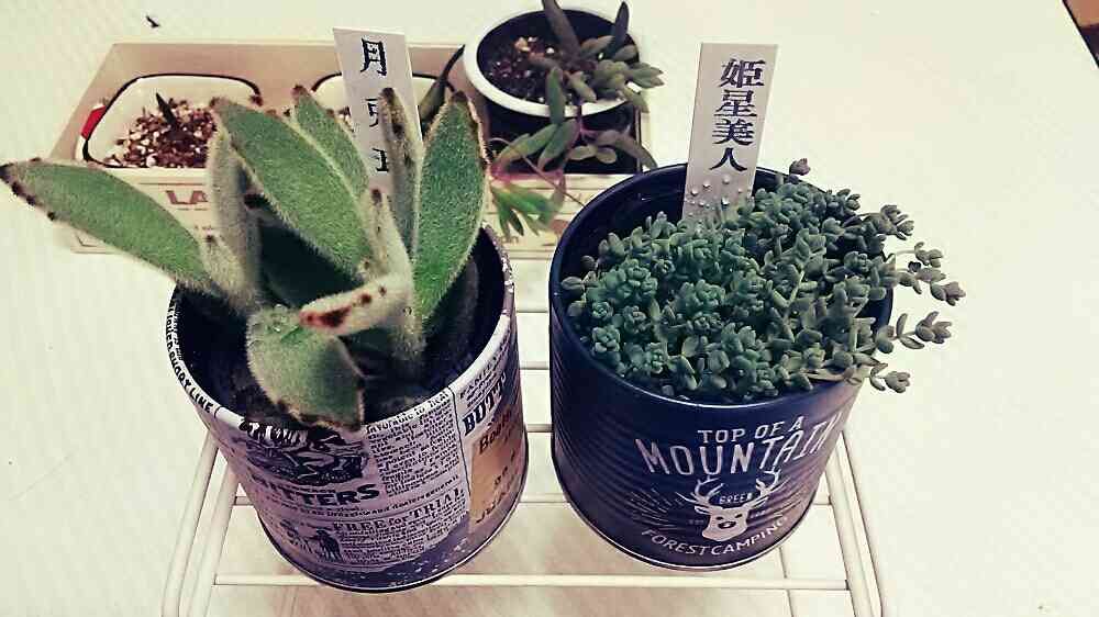 ホームセンターでゲットしたこの2人にはセリアの缶に入れてあげました。