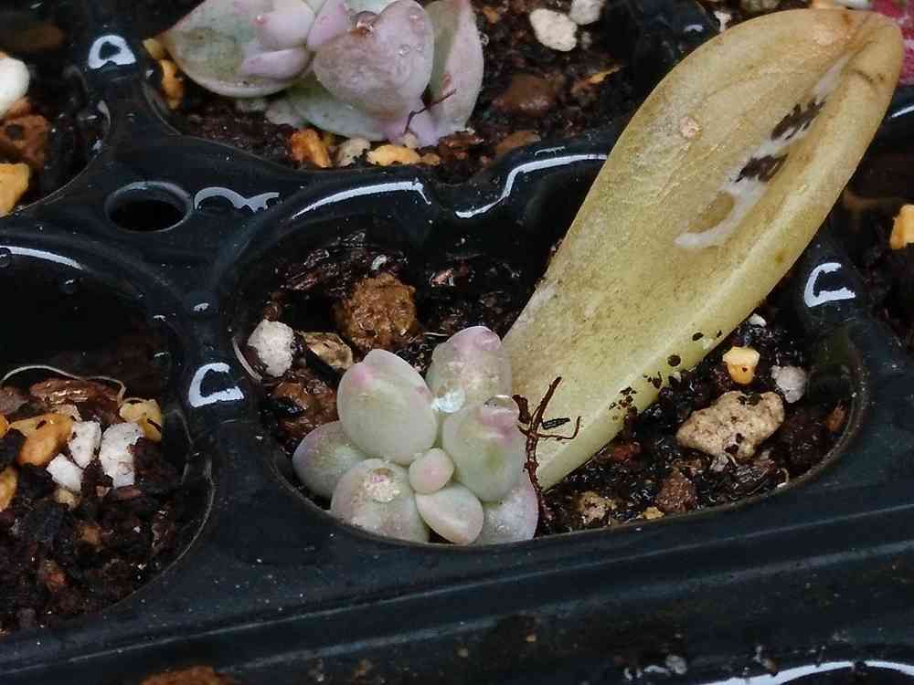 大きくなり紅葉も褪めた蒼星の葉挿し🌱