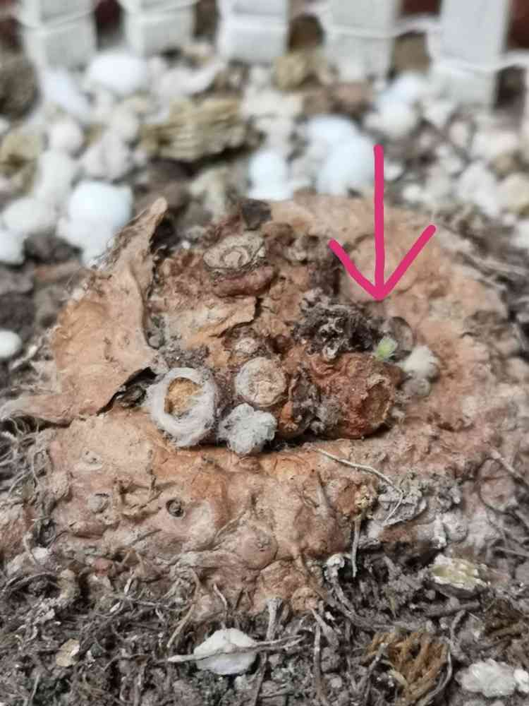 レウコトリカさんから芽が出てきた!もう春なのかなー?