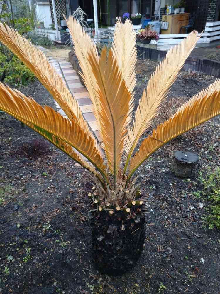 こちらでは、蘇鉄も冬にはこんな色になるのが普通です🤭