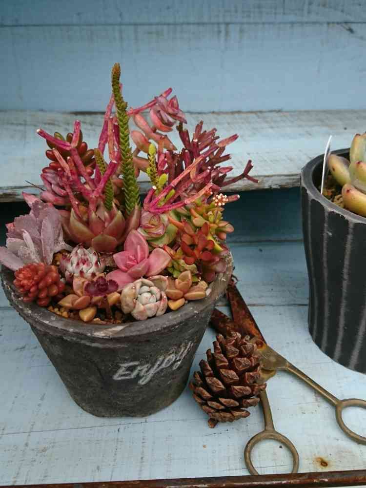 前の休みにスカスカ寄せ植えに足し足ししてみた。