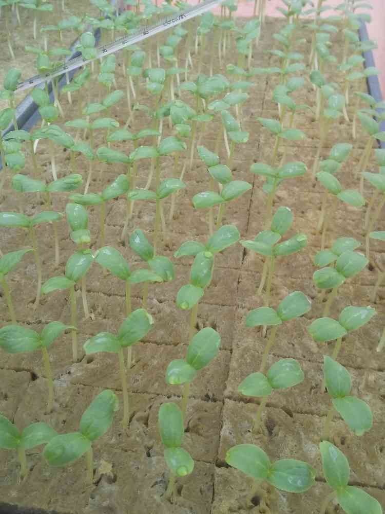 ロックウールだったか、グラスウールだったか、種蒔き用のふわふわしたものですよ~