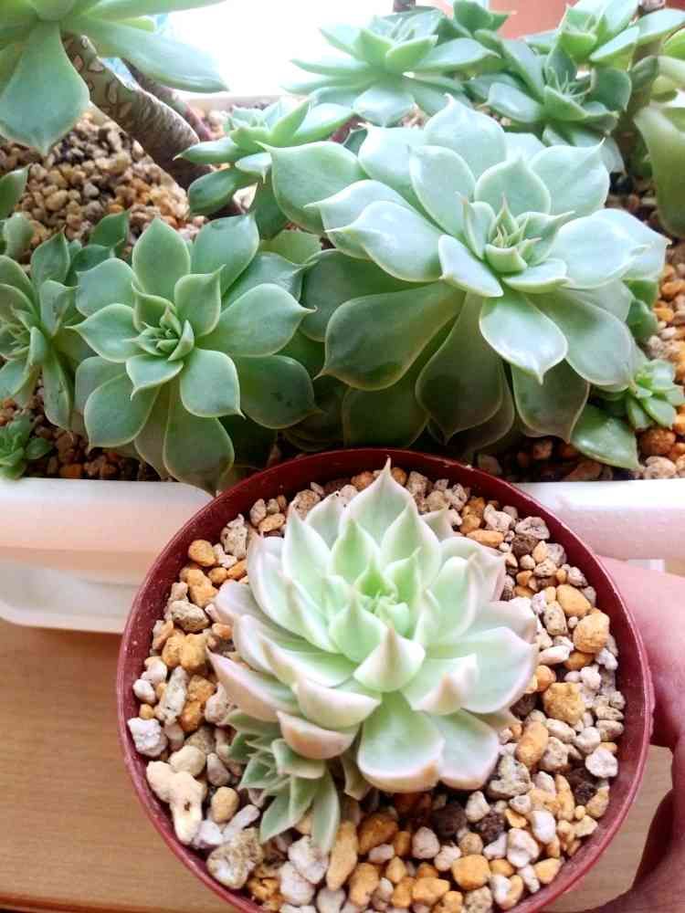 うん、やっぱりさっき載せた1つだけ色違いの葉挿しっ子が錦っぽく見えてしまう…