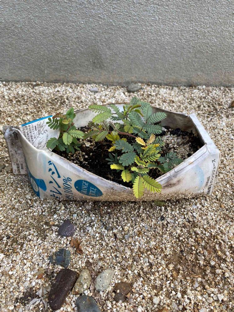 去年の秋に種から発芽させたミモザ。たくさん発芽したので植える場所がなく、この子達は仕方なしにとりあえずジュースパックの中で育てていて、冬からほぼ放置の子達だったのですが😅