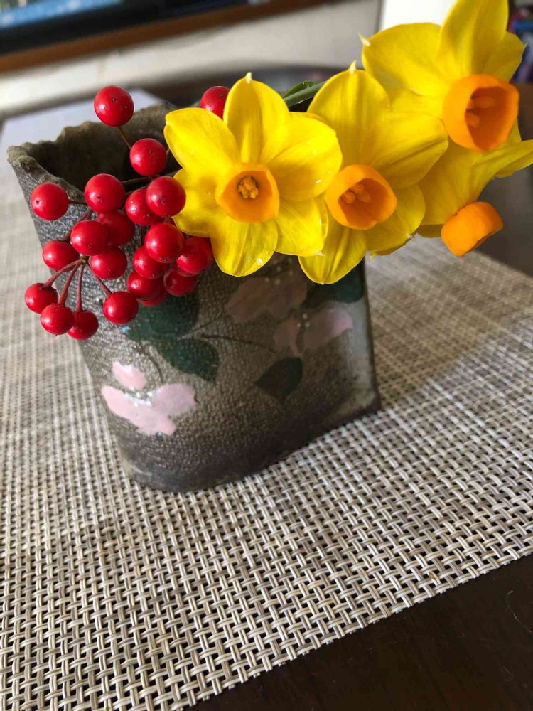 益子焼です♡お土産で昔いただきました。可愛らしくて大好きな花器です🌸