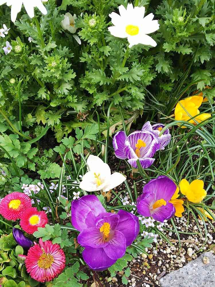 色とりどりのクロッカスとご近所さんとの競演♪🤗💕🎶