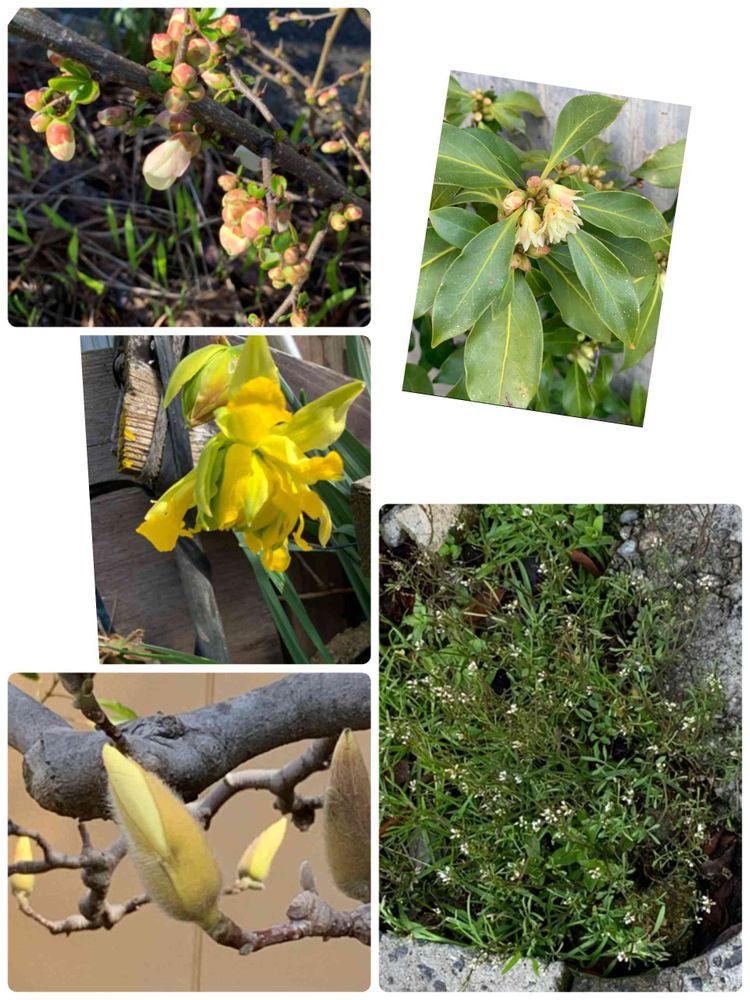 左上は、ボケの花かなぁー