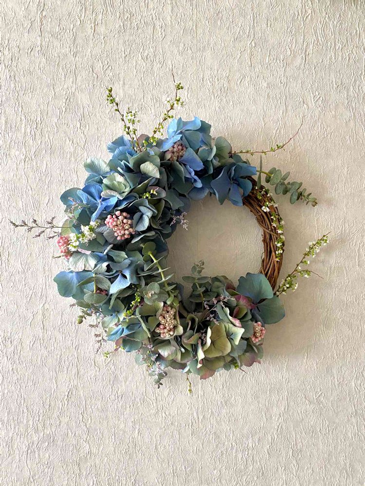 私は扱い易いフレッシュなうちにリースにしてしまいます。その際は乾いて隙間が出来ないよう出来るだけ詰め詰めで巻いていきます。