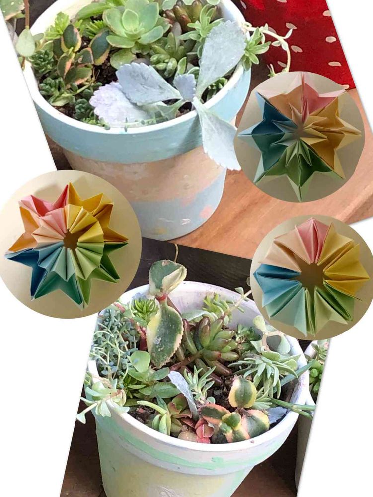 コスモスラブさんの小さな庭,リメ鉢,折り紙の投稿画像