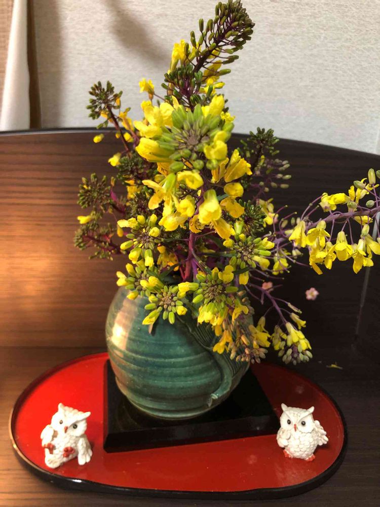 風が強く揺れて葉牡丹が斜めになってしまうので葉牡丹の花をカットして室内に飾ってみました。