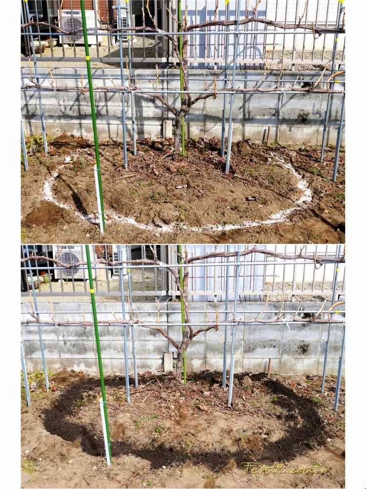 4月の芽吹きに向けて、ブドウ(シャインマスカット、デラウエア、ピオーネ)に施肥を行った。💊💊💊