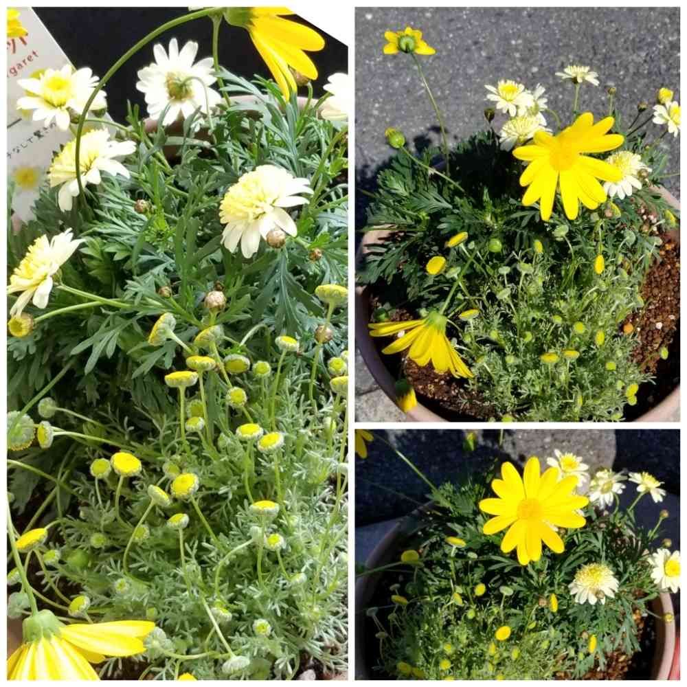 苗のままキープしていたユリオプスデージーが、元気が、なくなり花が、頭をもたげています。