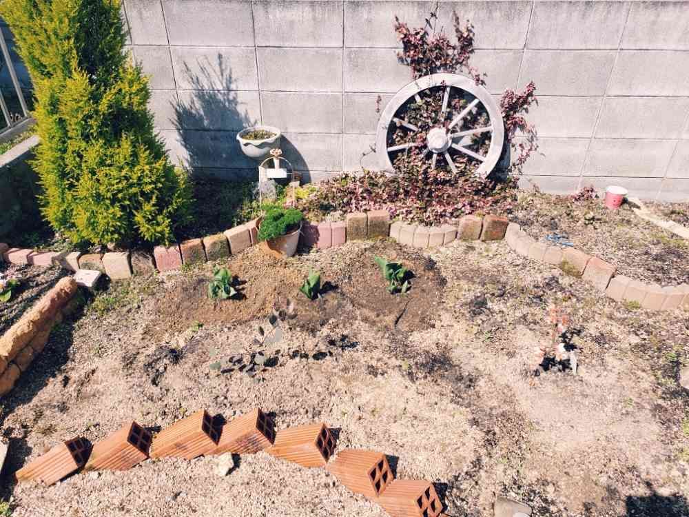 右寄りに植えようと思ってたら、何かの球根が植わってて…何か植えてたかな…🤔?????