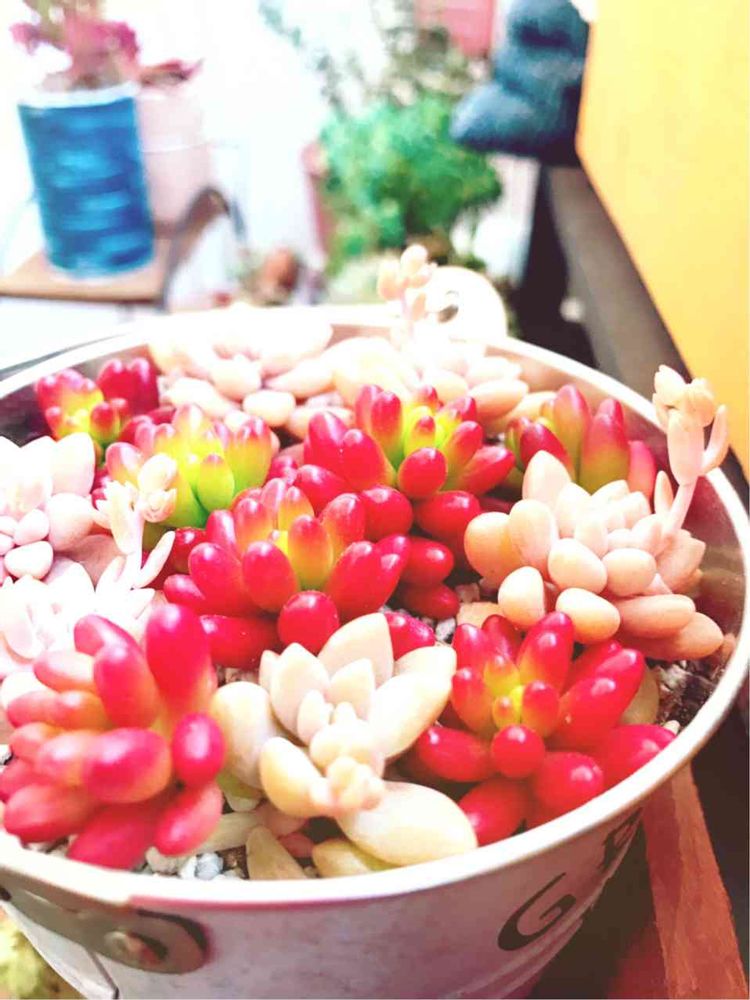 日頃は多肉を見ても何も言わない娘が、ピンクと赤で可愛い〜ね💓って言ってた😉❣️