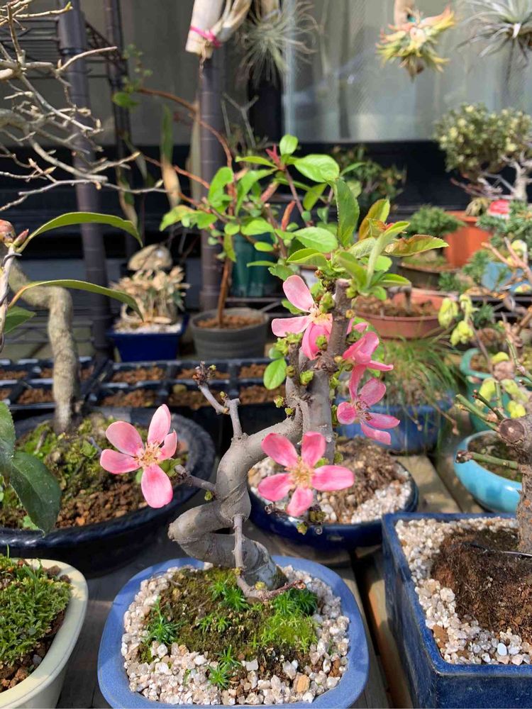 さん、やっぱり実の印象が強いのでしょうね。花もこんなに魅力的なので、一粒で二度おいしい盆栽です(古っ💦)