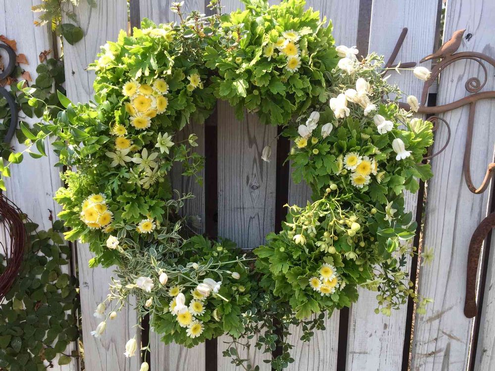 マトリカリア、シレネクレマチス、タイムなどを用いた春らしいリース💕