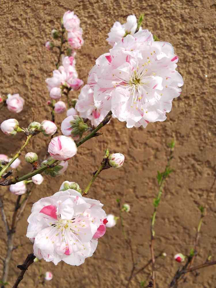 一本のハナモモの木から三色くらい花が咲くのね❗️