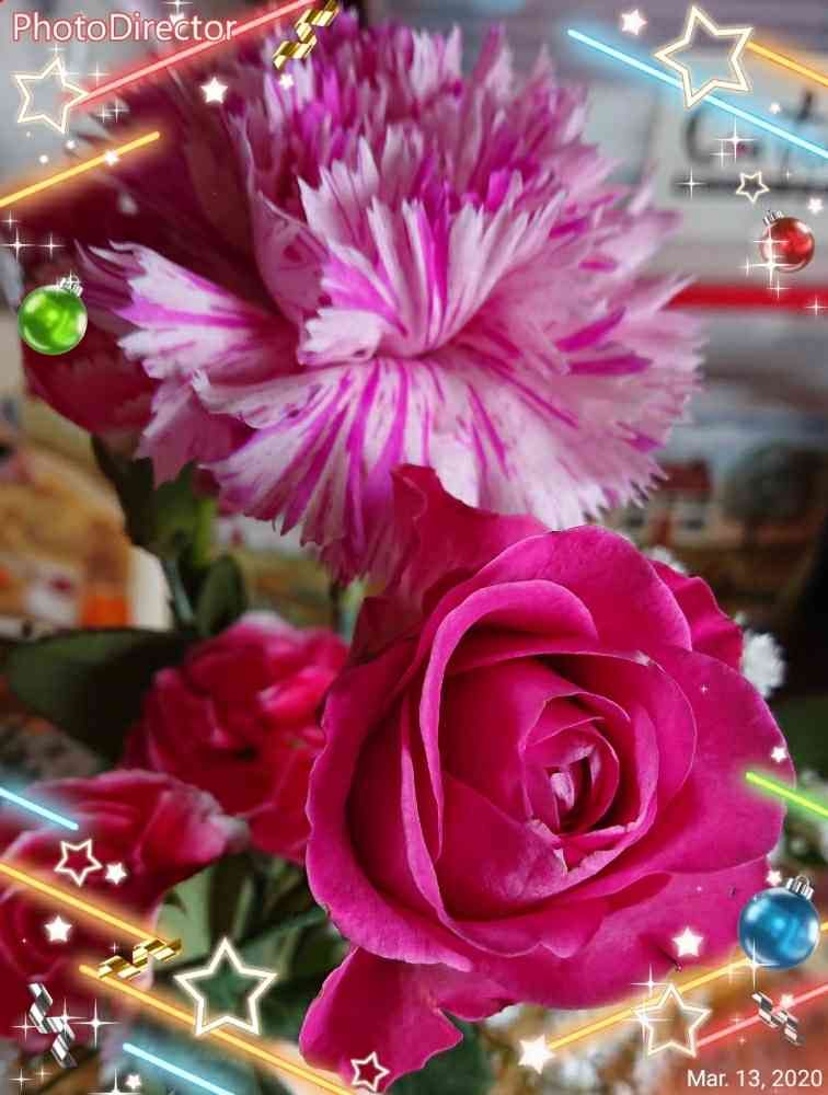 素敵な薔薇とカーネーションね🌹🌸✨
