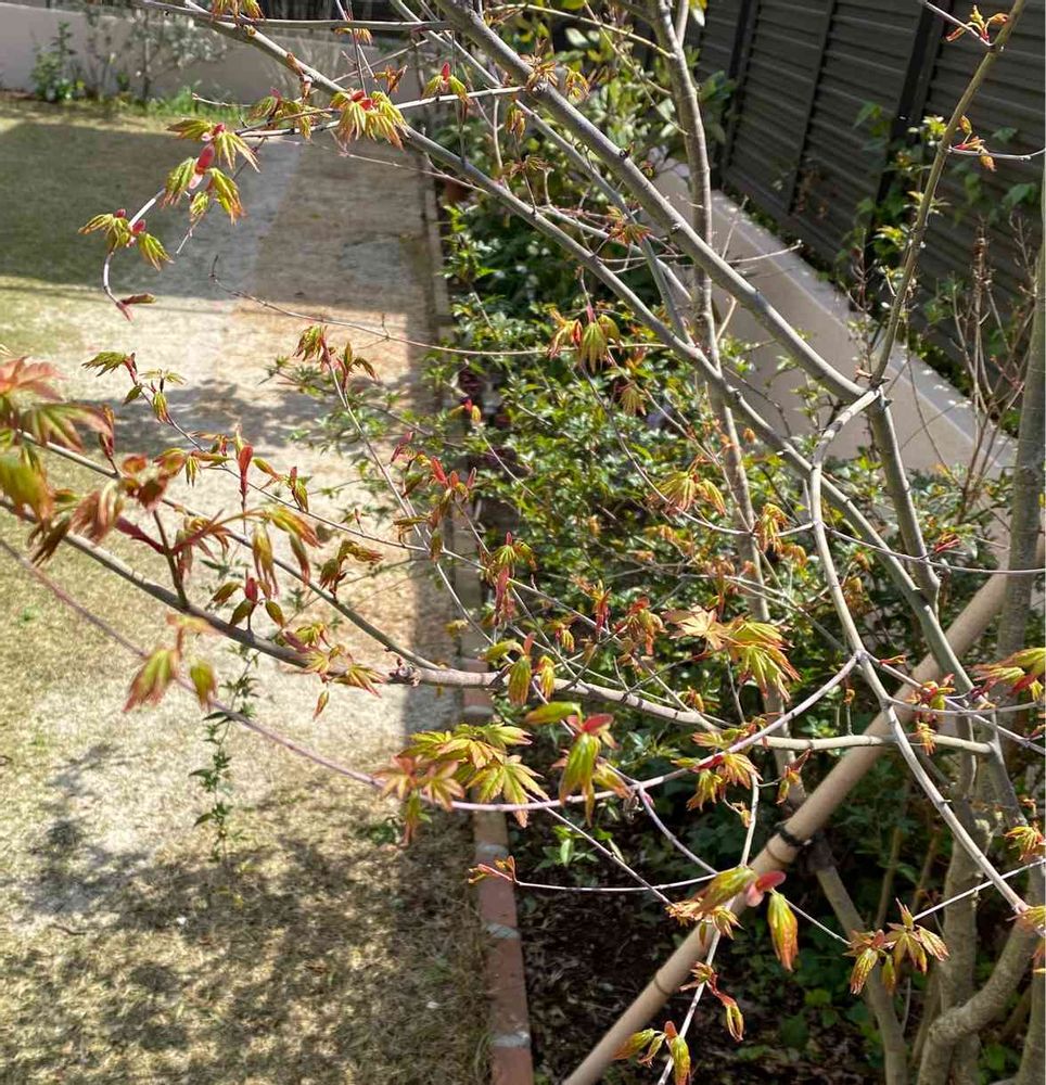 いつの間にやら、紅葉の葉がたくさん開いていました。春が近づいているのですね✨