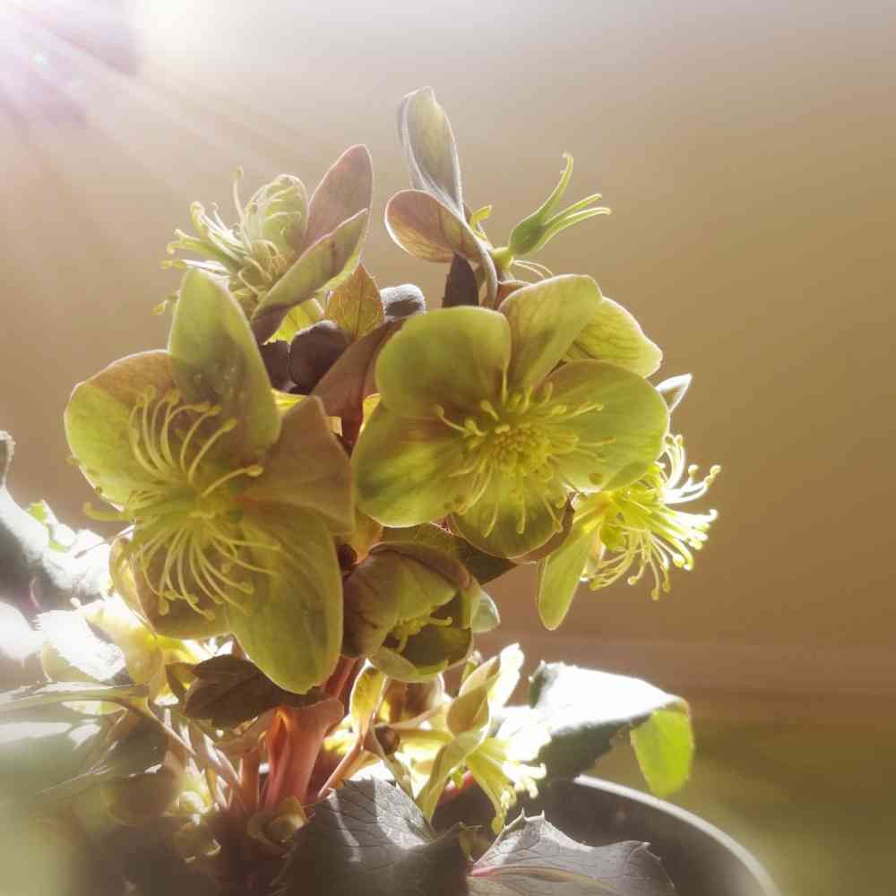 蕾の時はクリスマスローズのチョコレート色ですが、花開くとグリーンです