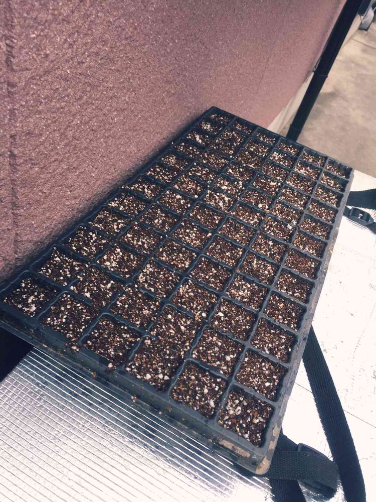 先ほど種まきしたコキア、大丈夫かな。