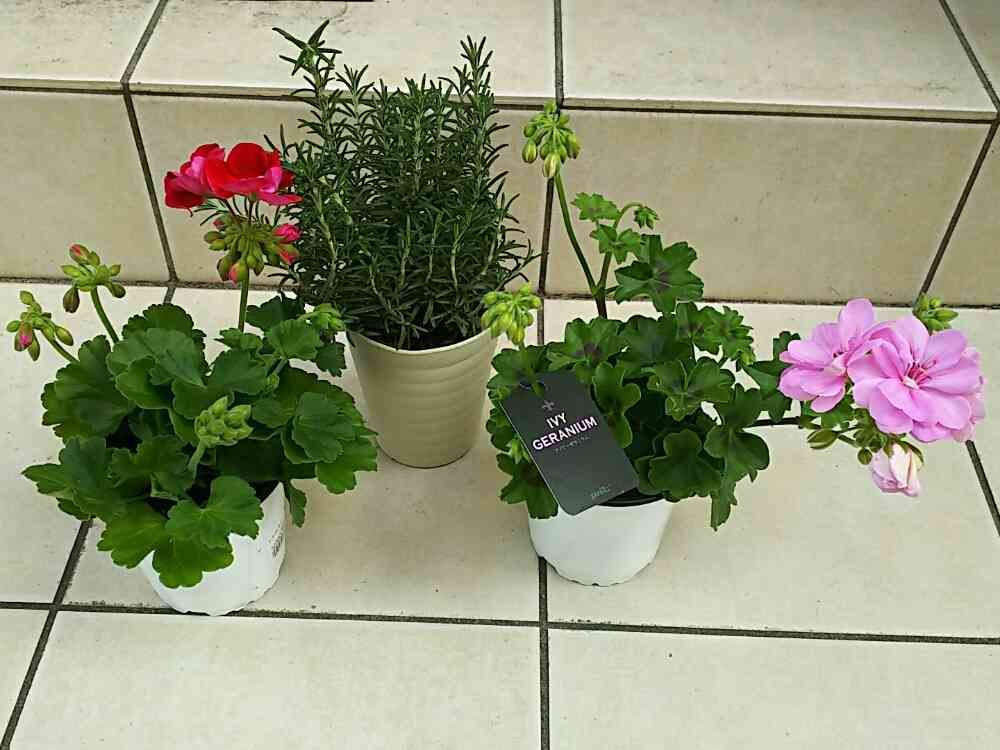 香りを嫌がってくれるらしいローズマリーと虫除けにもなるゼラニウム。