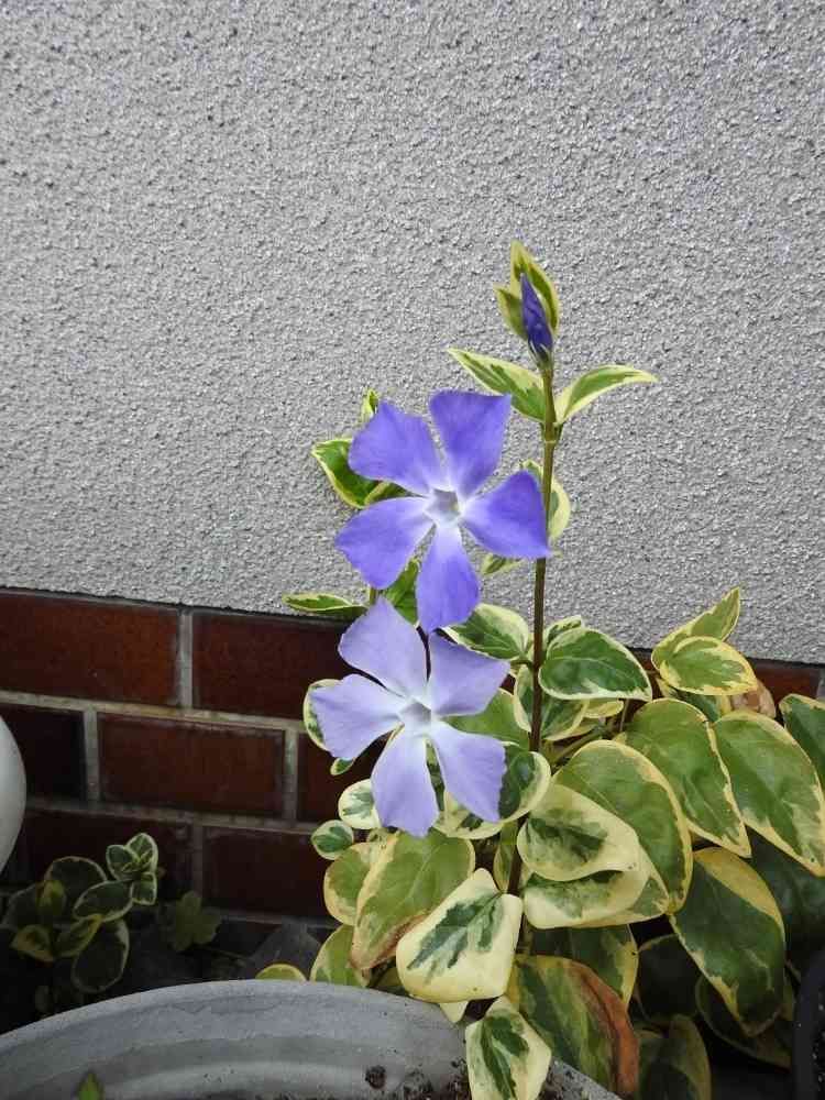 道すがら民家の軒先で🏵咲くツルニチニチソウの花🏵