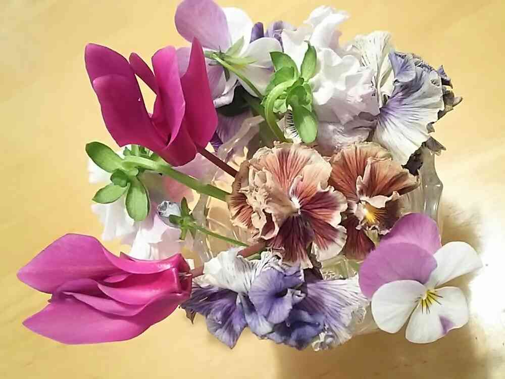 綺麗に咲いてくれて、ピークをちょい過ぎても集めて食卓に。楽しませてくれて有難う、センス無いけど😅